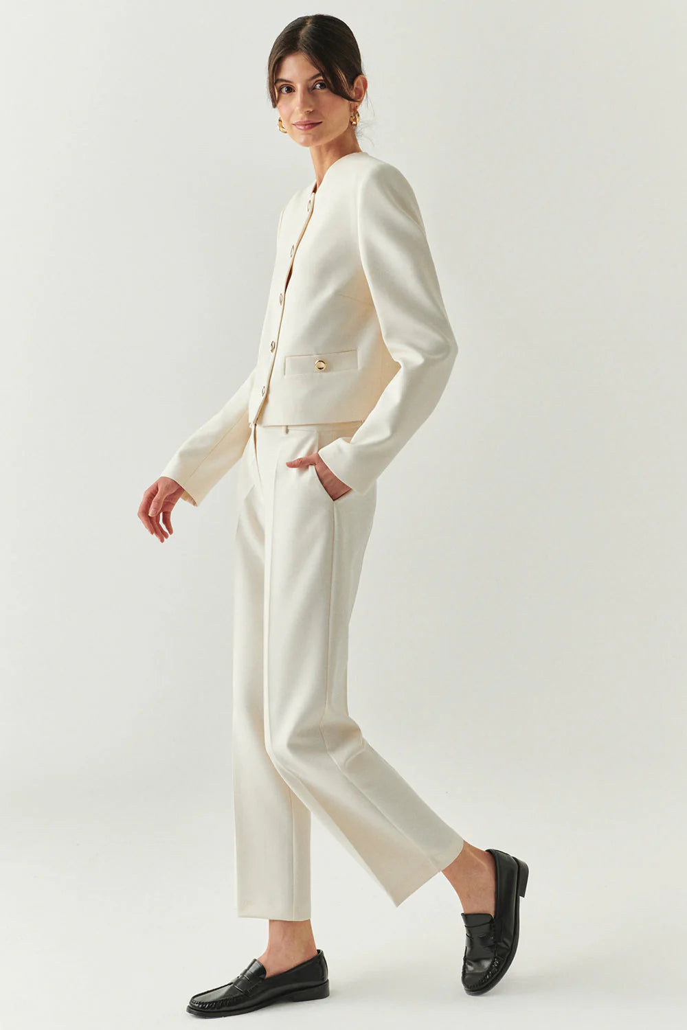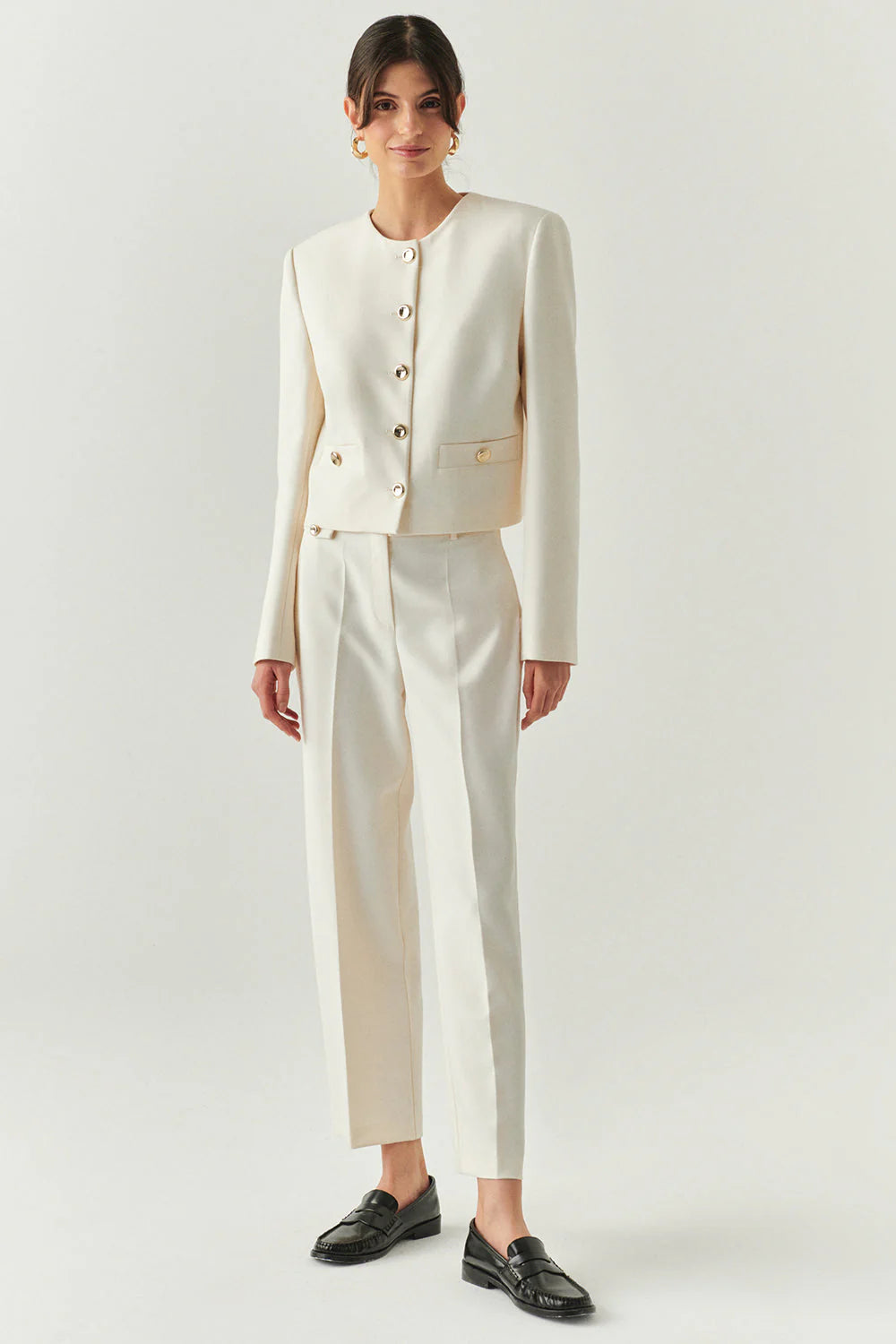 The Coraline Pants in black offer a tailored high waist that enhances your silhouette, paired with a flattering leg length and comfortable stretch for all-day ease. Designed with side pockets and a sleek front, they deliver classic style you can rely on.