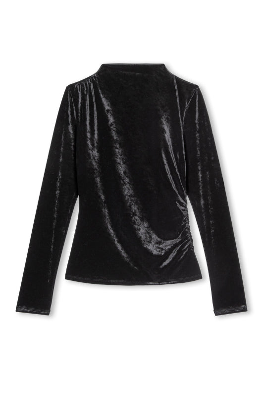 Indulge in the timeless elegance of the Joelle Top, a contemporary interpretation of the traditional long-sleeved design. Skillfully crafted from luxurious jersey fabric, this top features an alluring asymmetrical mock neck and delicate shirring details on the right shoulder. Effortlessly elevate your attire by pairing it with a skirt or your beloved jeans.