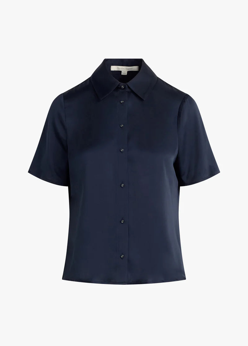 Crafted from sumptuous silk and luxurious satin, the Take Me Seriously Top exudes an air of sophistication. A classic collared neckline and subtle short sleeves add to its timeless appeal, while the tailored fit ensures it will become an essential piece in your daily wardrobe.