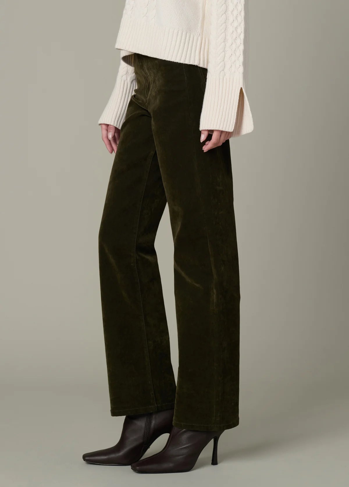Experience the luxurious feel of comfort stretch denim enhanced with a rich, all-over flocked texture that delivers a soft, velvet-like appearance.