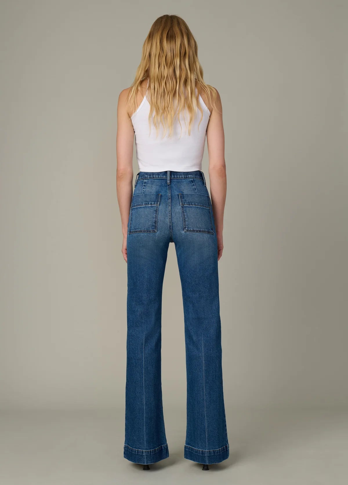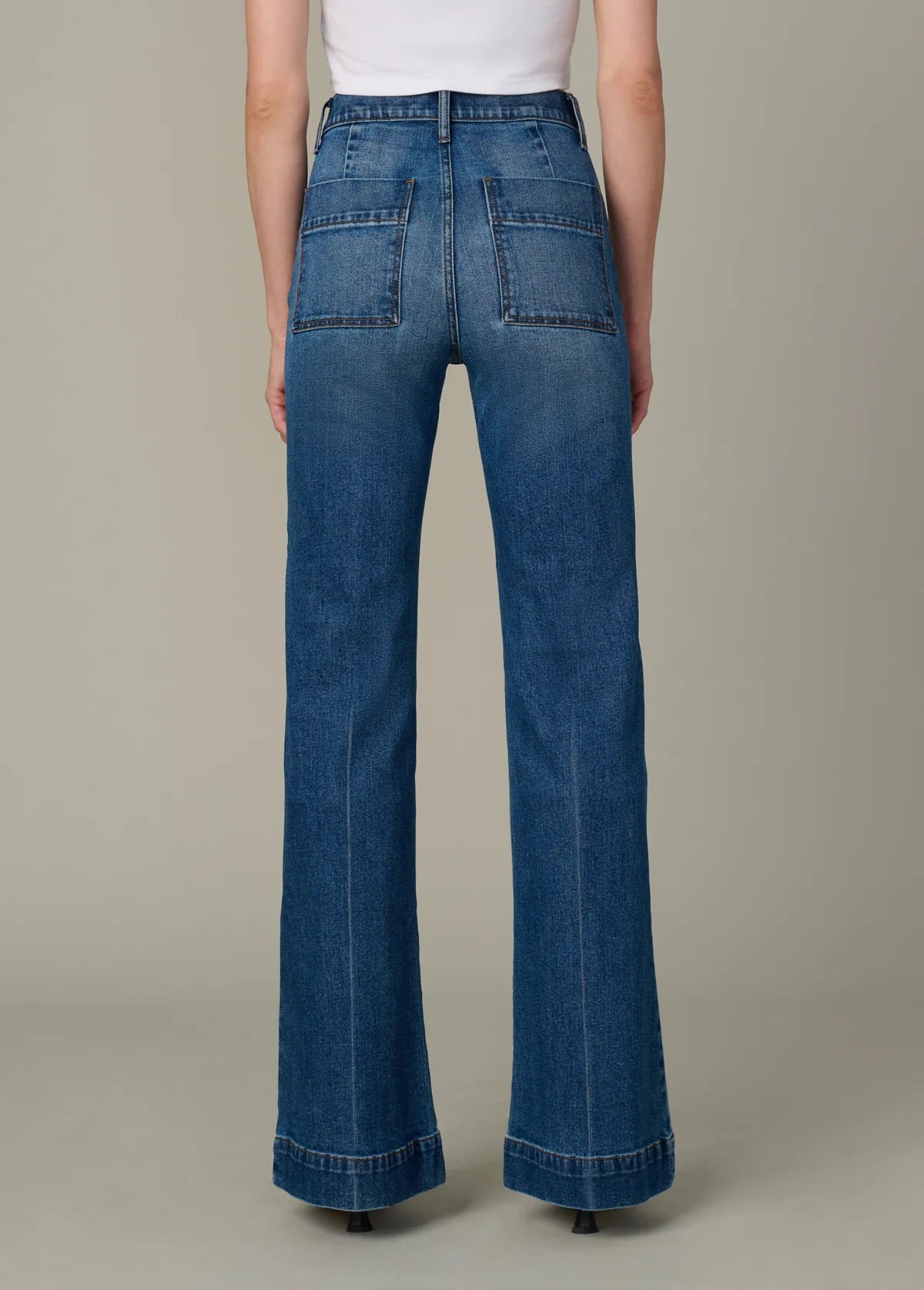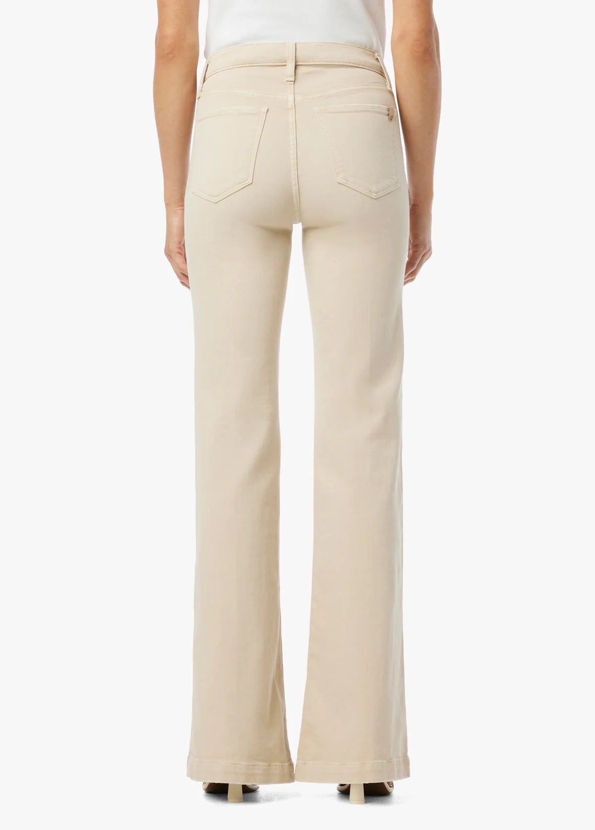 The Molly High-Rise Flare is fitted at the waist and kicked out at the wide hems, creating a curve-hugging ’70s-inspired silhouette. These forever-flattering jeans feature Flawless super stretch denim in a sleek neutral wash, Safari, and are complete with slant front pockets.